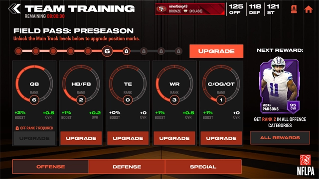 完成挑战并升级你的NFL球队以攀登排行榜!