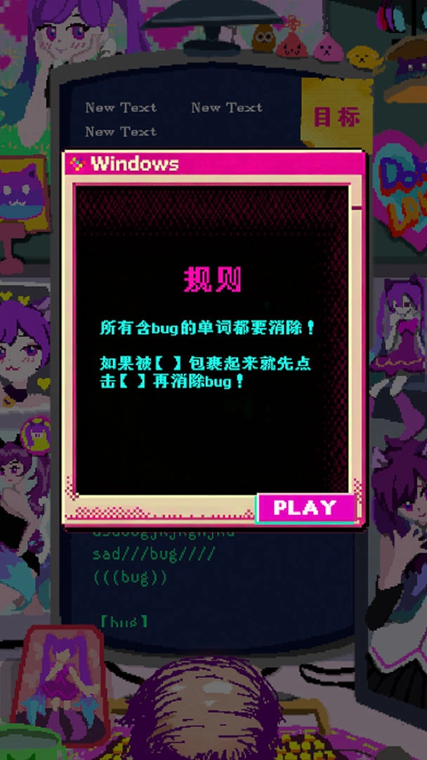 这个玩法像是节奏游戏和打地鼠的混搭,玩家得在字幕像瀑布一样往下掉的时候,精准地点击那个BUG符号。关卡越往后,代码错误会变成爱心、星星这类东西来干扰你,有时候还会冒出得连续点击的组合BUG,对手速和眼力都是不小的挑战!