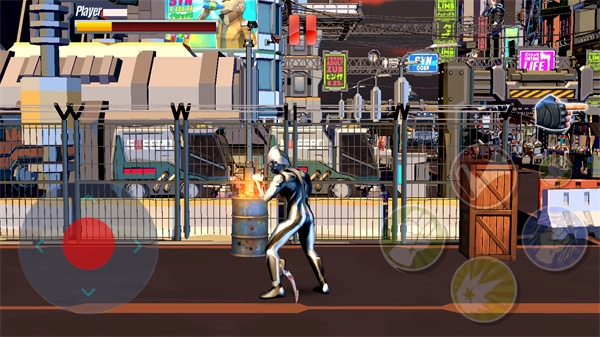 3、左下角的摇杆能够控制角色移动,右侧的按键则是可以使用拳头、脚攻击,还能防御,以及跳跃和爆气。