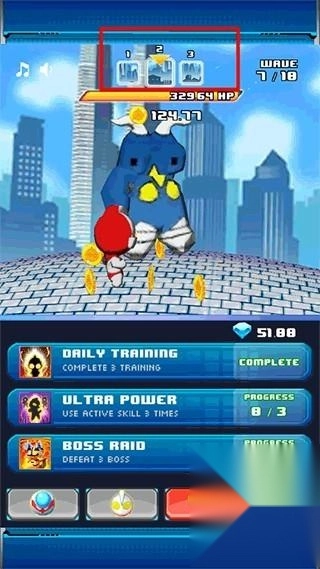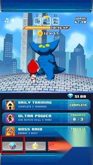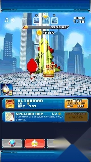 3、左下角的圆形图标就是奥特曼的技能选项,点击一下奥特曼就会进化。