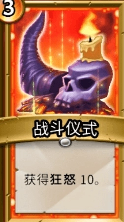 当然选择“狂怒”也不是不行,只是目前单纯增加狂怒的卡不多,像“战斗仪式”这张卡费用又太高,狂怒效果会逐渐减少,与这个流派不太适用。