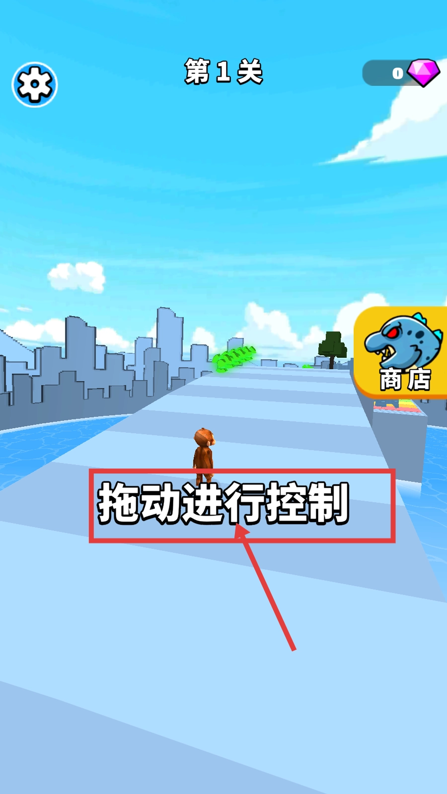 1、在第1关,你需要通过【拖动操作来控制】角色的移动,开启跑酷挑战,以此熟悉具体的操作方式。