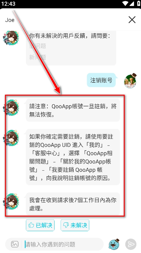 6、输入注销账号,客服收到后会在七个工作内处理,最后根据提示完成注销即可。