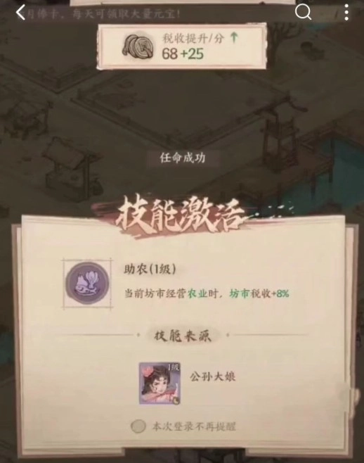 官职的提升就决定了玩家们在游戏设定的这一方水土之上能做些什么。在前期提升官职的方式就是根据任务提示完成开局任务,也就是流民安抚工作。每成功安抚流民一次,这个县的人口数量就会提升,人口提升之后这个县的税率也会提升,当这两项数据有所上升的时候,角色的官职也就提升了。