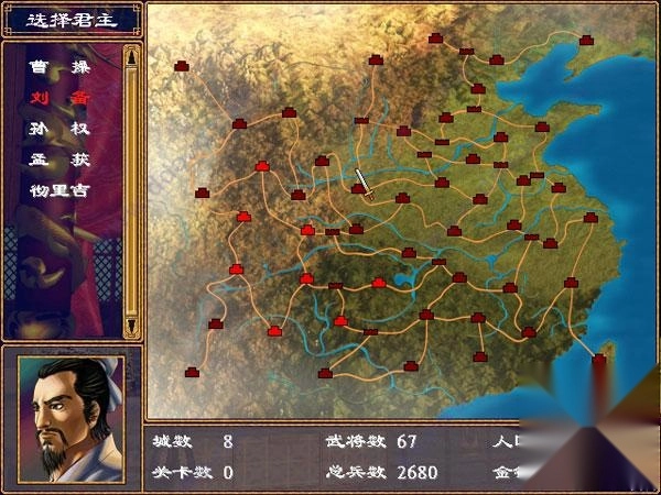 4、以三国鼎立剧本为例,选择君主:刘备进行游戏;