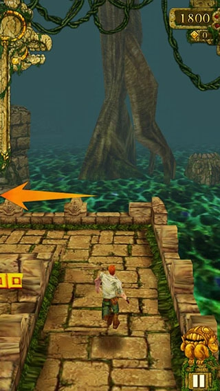 1、故意撞击墙壁。此方法操作简单,如图所示,在前方无障碍的情况下,滑动手指撞击墙体,怪物会随之出现并减缓速度,待怪物消失后可再次重复该操作。但需注意:一旦摔倒会有短暂的操作延迟(下述两种方法同理),因此当前方存在障碍时不可使用此类技巧。