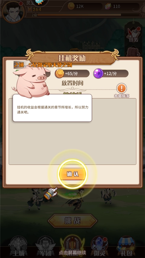 10、此外,挂机的收益也会根据通过的章节所增长。