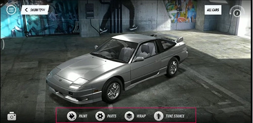 可以看到许多可供我们自由挑选使用的汽车零件,借助这些零件,我们能够把汽车改造成自己想要的样子。