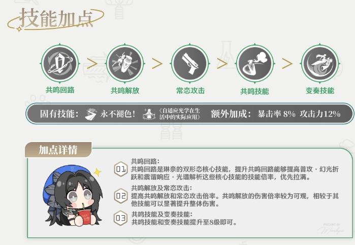 按照培养素材需求、技能优先级推荐、武器推荐、声骸推荐、共鸣链分析、配队建议等多个方面,详细剖析该角色的方方面面!