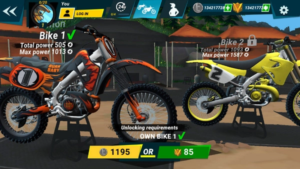 3、带领玩家在职业生涯和时间竞速两个模式之中,去体验极速刺激而且疯狂的越野摩托车竞赛。