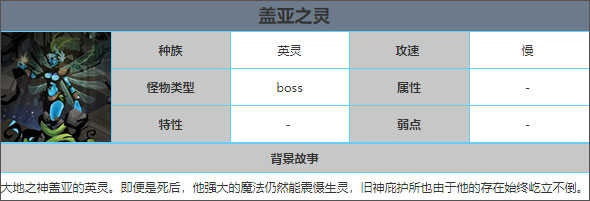 2、从属性面板来看,盖亚之灵的强度真的和他的外表一样人畜无害。只是有着高额的生命值,其他强度和150守门几乎没有差别。