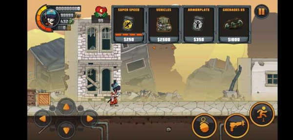 2、进入游戏关卡,通过移动角色,跳跃和攻击,使用不同的枪和手榴弹可以快速的消灭敌人