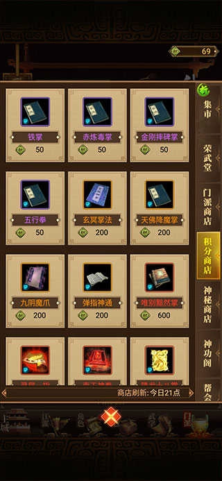 3、抽武学送积分就是为了此刻,即使你脸黑,抽不出来,也是可以集齐一套,首先抽武学一次一积分,然后进积分商城兑换,50一本。