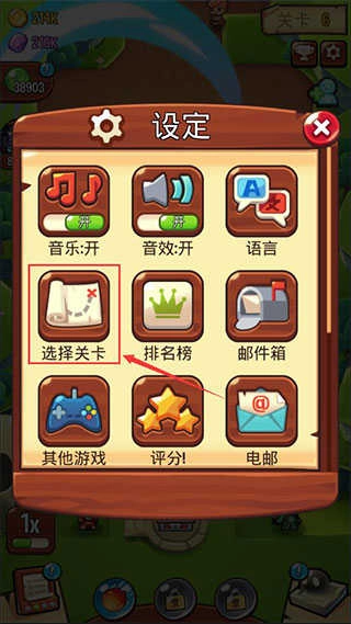 2、然后在设置中找到选择关卡一项并点击它。