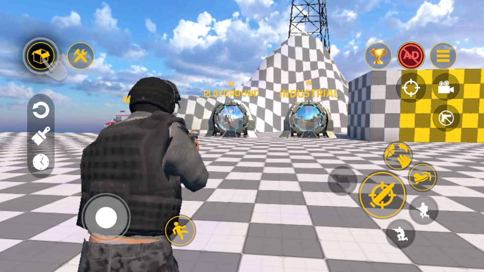 2、探索游戏中的领域,在其中释放类似于沙盒游戏的创造力,像构建游戏一样进行构建,并以枪支游戏的强度参与追逐。
