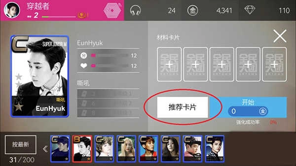 收集并装备明星卡片,提高游戏属性;