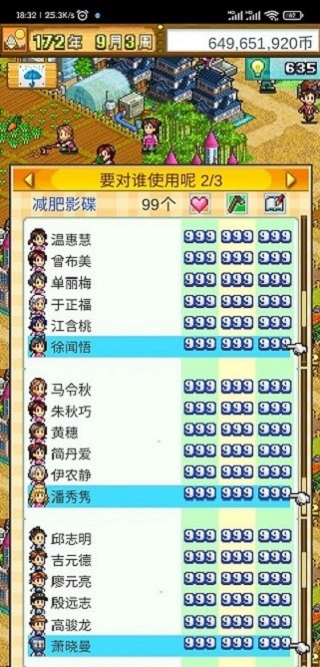 大约60多年后,我通过道具将全员属性提升到650以上,再经过150年的挂机,全员属性接近999。