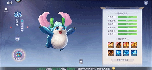 四不像是真个游戏中最好养的英雄,可以从R品质升级到UP品质,并且专属法宝也可以通过主线认为直接5星,四不像技能必须要有保命,配合只身的被动技能可以保命很多次,从而提高他的生存能力,另外法宝除了了专属法宝外,必须佩戴波澜剑这样每次保命后能通过群攻有效的回复血量,又大大提高了他生存回合时间。