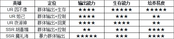 总结:本团队2个UR英雄,2个SSR英雄 1个系统送的UR5星英雄,另外其中1个SSR英雄也是任务活动赠送可以到满星的,所以培养成本非常低,效果会非常好,并且在公测后也肯定是玩家喜欢的阵容,因为暴力简单直接。