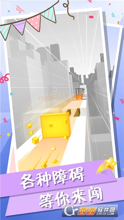 除了障碍物,还要小心脚下,有时候不要掉下去了。不管是掉下去还是碰到障碍物,游戏都会失败。只有顺利通过这些障碍物,到达终点,才能顺利通关。