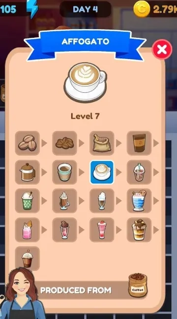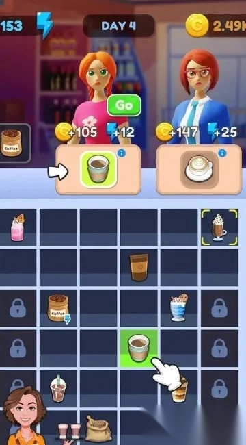 游戏巧妙融合服务与清洁两大元素,形成独特而有趣的合并玩法,带给你新颖的游戏体验。将服务顾客与清理餐盘等情节融入合并食物过程,开创独特的咖啡馆经营玩法。