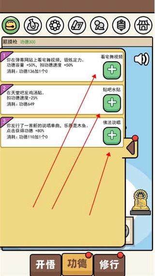 4、通过参与B站宅舞挑战玩法可提升功德容量上限,在贴吧鸡汤吧参与互动水贴可降低功德衰减损耗,发布原创佛系说唱单曲则能提高单次点击操作的功德获取量;