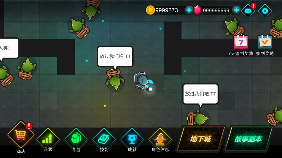 1、进入游戏界面后,法师角色具备自动打怪功能,游戏内拥有无限的游戏币与钻石,这些资源可用于购买各类商品、提升等级以及解锁技能。