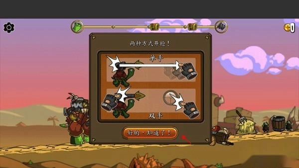 5、有两种开枪方式,一种是单手点击枪,一种是双手,了解了之后点击确定。