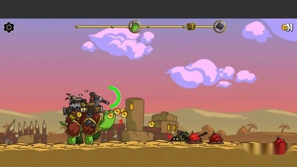 《超级装甲战龟》属于动作射击类型的游戏,其画面采用2D手绘风格,视觉表现十分出众,色彩明亮饱满且充满活力;背景音乐融入了金属摇滚元素,能很好地渲染出激烈的战斗氛围。游戏中敌人兵种丰富多样,死亡动画流畅自然,可减少玩家长时间游玩的乏味感。玩家能够操控龟背上的多层炮塔,每层都配有不同的武器,并且可以自由切换和升级,这样的设计提升了游戏的策略性深度。