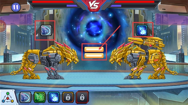 3、对战时观察双方技能图标,结合中间进度条状态,在克制关系下释放技能,快速积累能量触发【变身】技能。