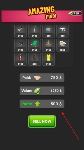 6、当储藏室里的物品总价格高于竞价价格,代表赚了,否则就赔了。