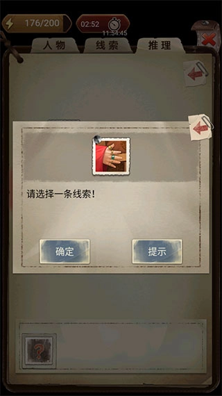 8、将所有结果都明了后,选择已经收集到的线索,点击【提示】按钮可直接获得结果