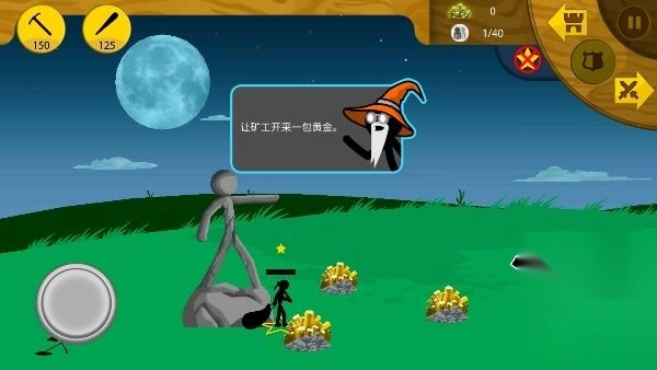 3、玩家在游戏中控制火柴人,使用简单的水平版操纵杆操作来控制火柴人打血。
