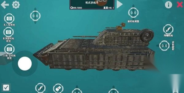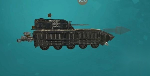 pvp专属重装版战车,附加了装甲,全方位防护,为了稳定就把两侧火箭卸了,换了三门速射炮和一挺机枪,相比之前版本火力有所下降,另外无人小车拆除了自爆,因为自动对战一开始就会自爆。战车有推进器,有坡就能上天的那种。