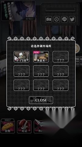 5、如图所示点击选择调查场景【休息室】继续游戏剧情对话