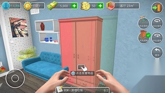 4、随后你可以对房间中的物品进行摆放,拖动可以移动物品位置,还可以进行旋转等等;