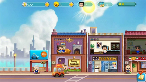 安装并启动游戏后,您会从一条基础的商业街道开启游戏之旅。第一步,先熟悉游戏界面,弄清楚各个功能按钮的作用。