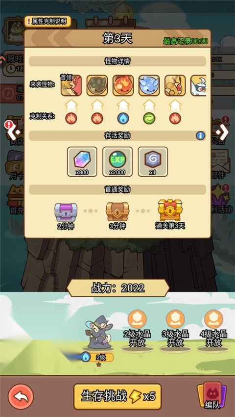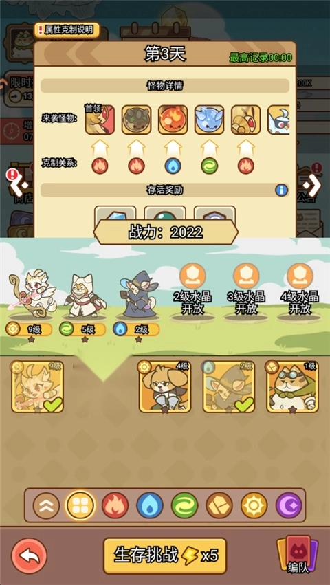 1、打开喵神的迷宫,点击生存挑战,在这里你可以查看当前天数的敌人以及BOSS的相应克制关系。