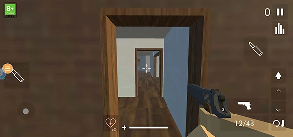 游戏里左下方的虚拟按键负责控制角色移动,右侧的射击键则用来操作当前手持的工具或武器。