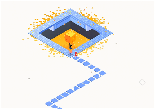 1、玩家身后会有一名NPC跟随,需要引导他前进。当到达黄色方块所在位置时,地图上的机关便会开始发生变化。