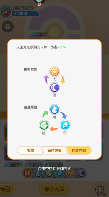 上阵同阵营的精灵能激活光环加成,要是全员都属于光阵营或者暗阵营,还能得到额外增益,而且光、暗阵营可以和其他元素阵营自由搭配。