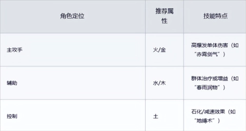 战斗机制采用五行元素相克体系,具体克制关系为金克木、木克土、土克水、水克火、火克金,队伍角色的搭配策略十分关键。当火属性角色与水属性角色形成连携技时,火属性角色的攻击能够触发水属性角色技能的“蒸汽灼烧”效果,从而产生持续的伤害输出。