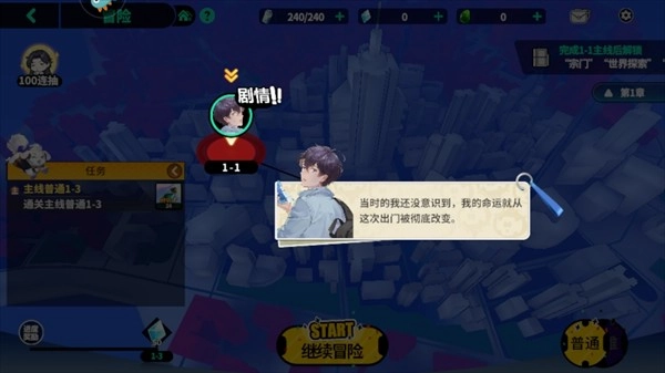 3、随后外出,出来后就到了主界面点击剧情模式完成剧情获得奖励。