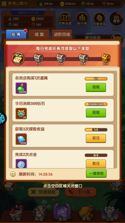 1、完成日常任务可获得丰富的奖励。