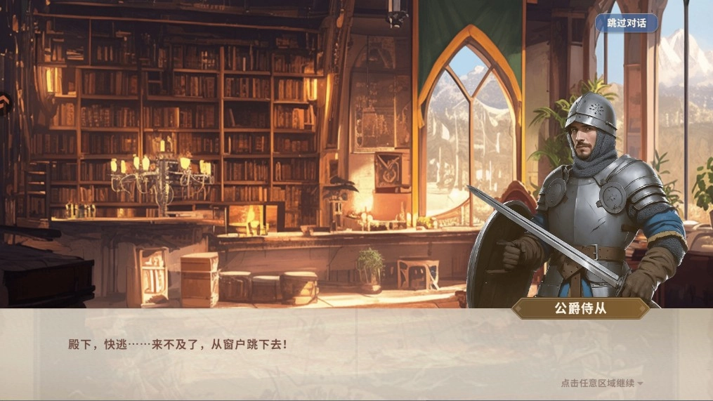1、进入游戏后,首先会呈现一段背景介绍:玩家扮演的角色是公爵之子,因遭遇变故不得不隐姓埋名,等待时机展开复仇,这便是游戏的主线剧情。