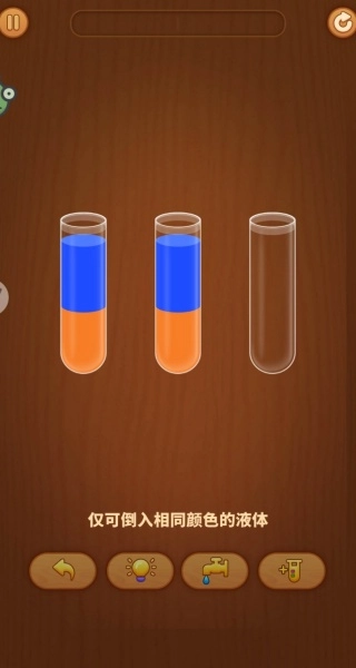 3、若倒水过程中出现错误,不要慌乱,利用关卡中的撤销功能,返回上一步调整策略,重新尝试。
