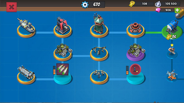 1. 第一步,在前期要保证稳定发育,明确升级的优先级顺序为:重机枪>迫击炮>兵种>其他。前期重机枪升级到4级就可以;兵种方面,多管平均达到3级就行;战舰中的登陆艇升至4级;加农炮和狙击塔无需升级,没有实际作用。