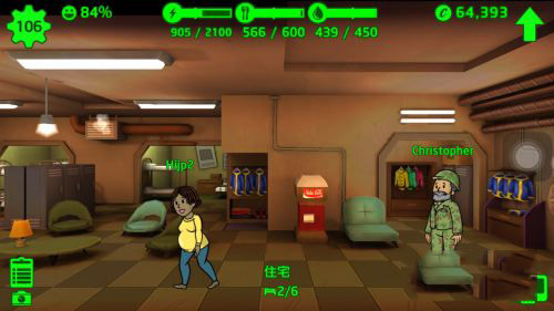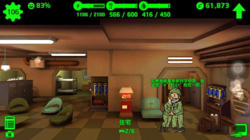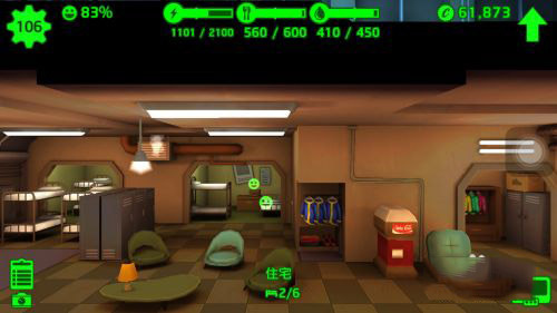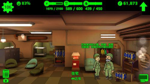 宿舍:用来增加人口,不是空房间就能装新的避难者,还可以把一男一女放入进行不可描述的事情。属性为C。