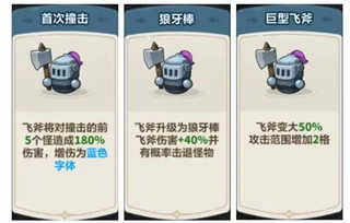 提升骑士的飞斧伤害、攻击范围以及击退怪物,保护城墙血量健康。