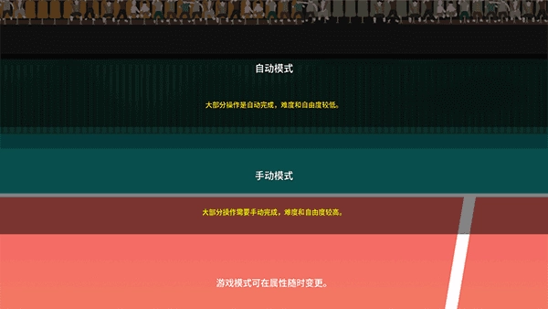 1、首先启动排球故事正版游戏后,会提供自动和手动两种可选择的玩法模式,其中自动模式的难度与自由度相对较低,而手动模式则正好相反;
